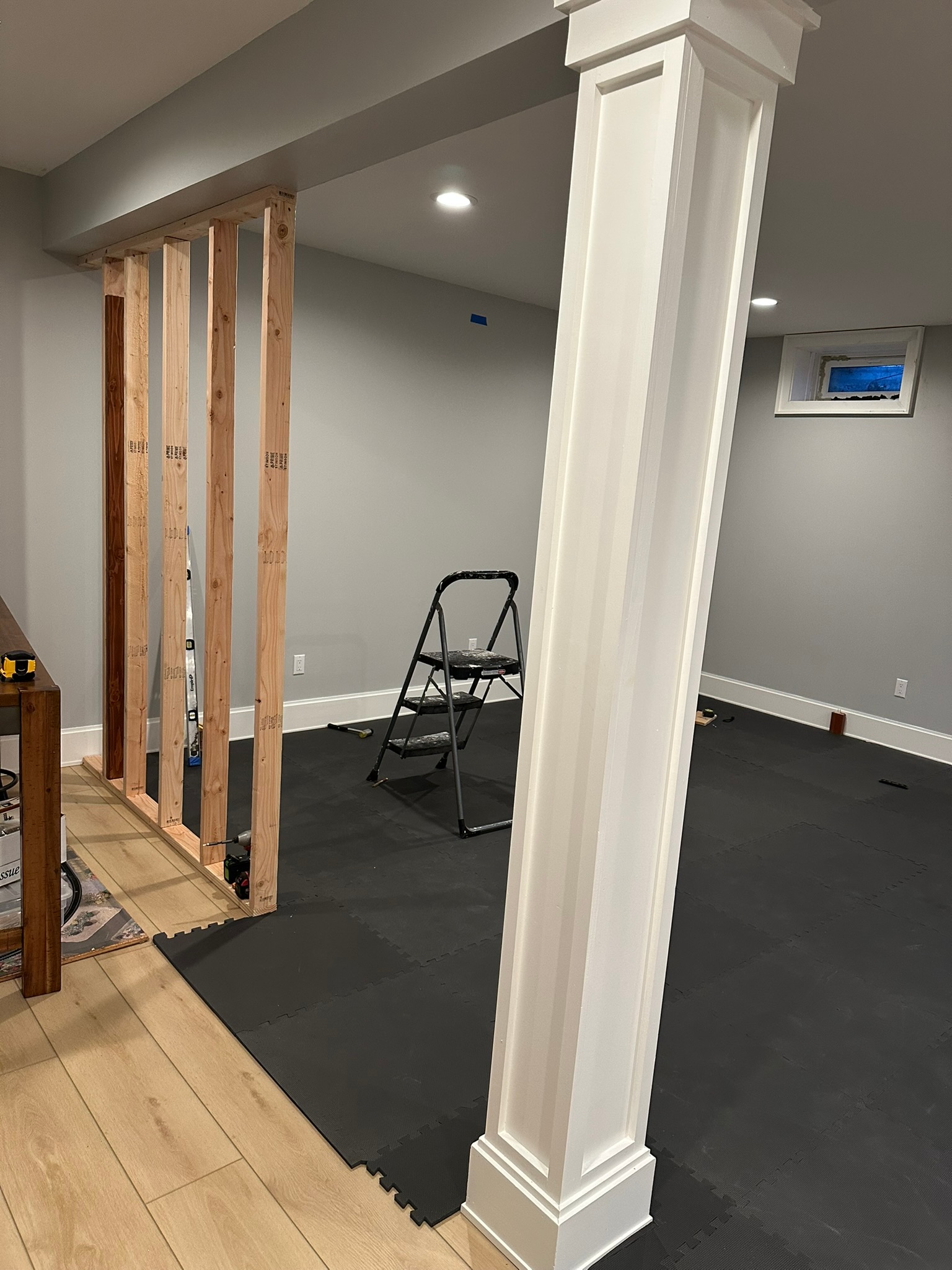 That meant framing. The kit attaches to the wall and ceiling, so I needed a proper stud wall where there wasn’t one. If you’re not comfortable with basic framing, this is the step where you call a friend or hire it out — everything else in this build is more DIY-friendly.