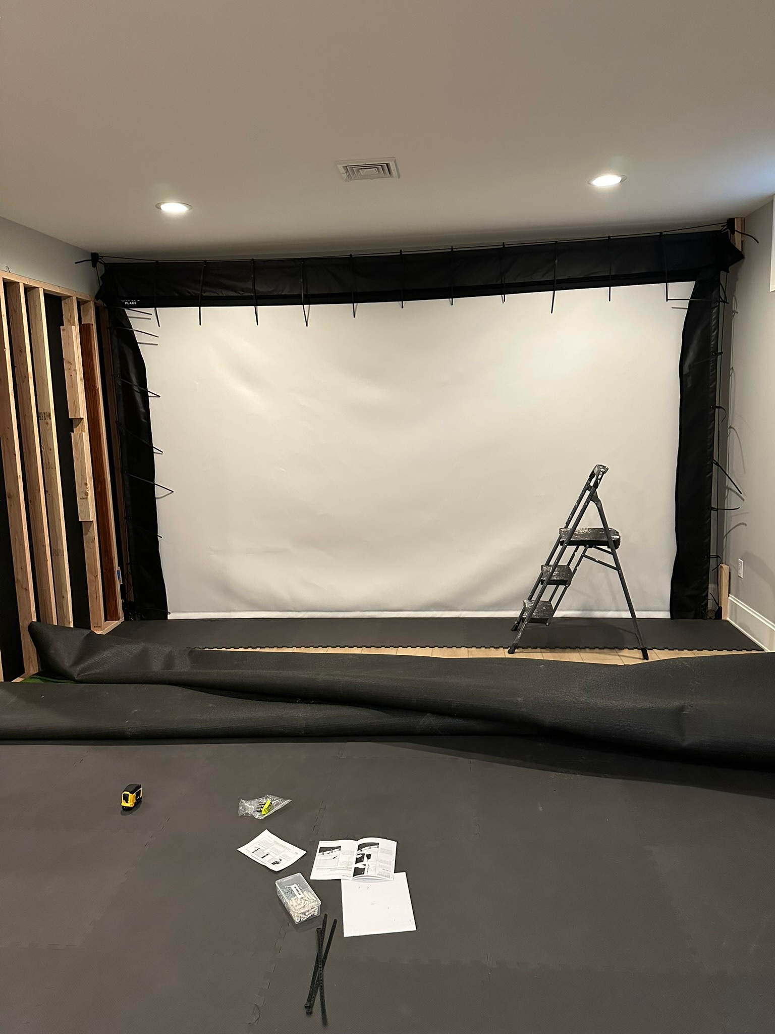 - Get the projector ceiling mount before the screen goes in. Mount placement matters more than I expected — doing that math before the screen is hung is much easier.