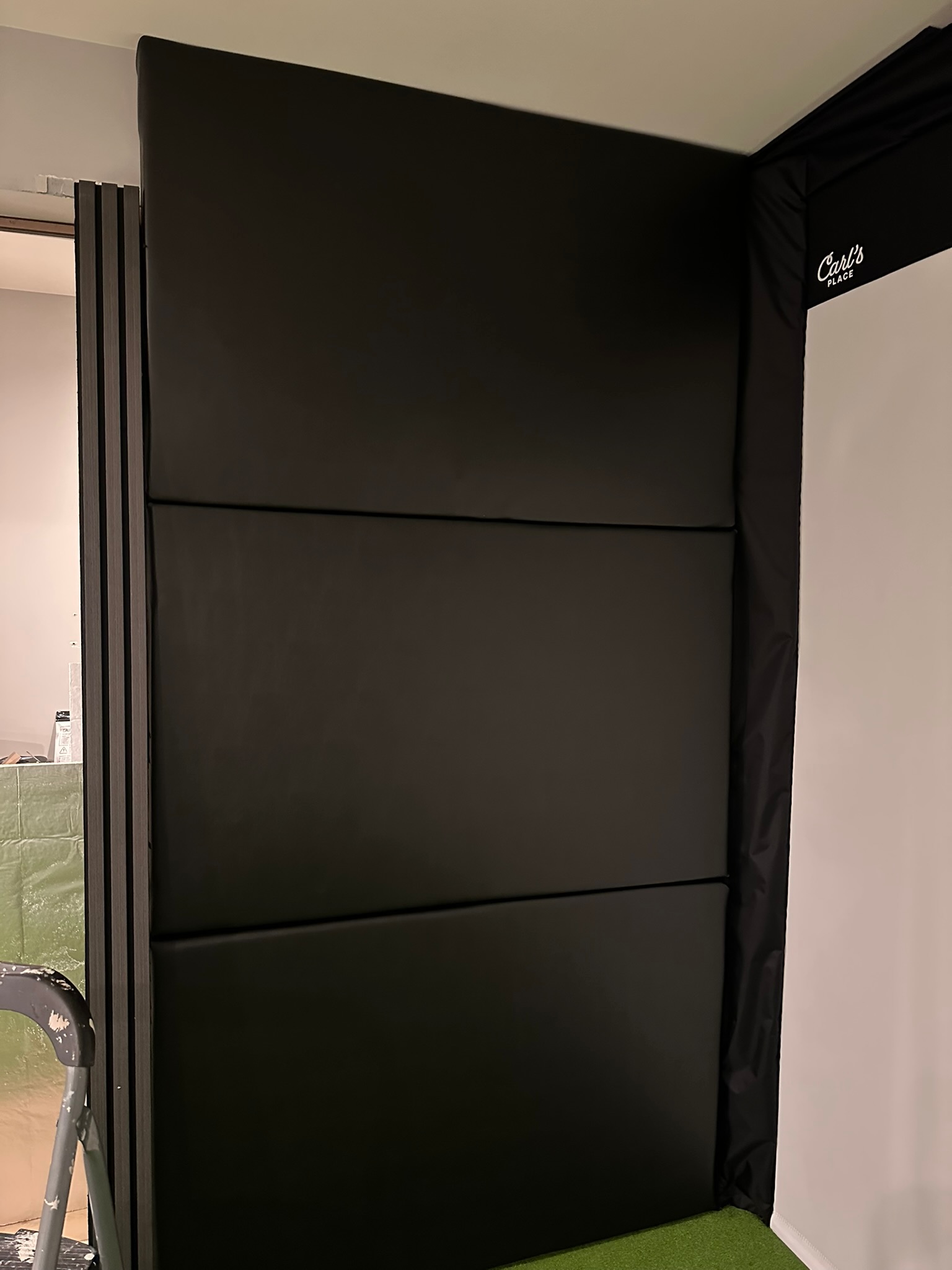 The Carl’s Place kit includes the side baffles, but the side wall padding is a separate addition. I added foam padding panels along the side walls — both for safety on errant shots and for the finished look.